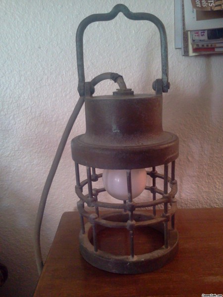 8 1/4" tall(12 1/8" including handle) x 5 1/2" in diameter. My thoughts were possibly something to do with mining, railroad, or marine. There is a groove on the underside of the main bell that is within the circumference of the cage portion, possibly to fit some kind of globe. Where the light socket mounts to the inside of the bell, it appears to have some kind of material possibly for water proofing or water resistence. I don't know if the wire to plug it in is original, but it does look old and is pretty heavy duty. The plug is a two prong with half round post for ground. Any help would be greatly appreciated!