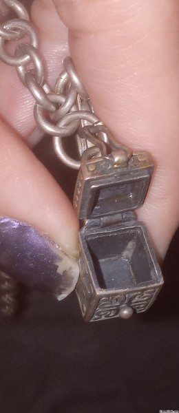 Sterling silver antique bracelet with box charm. Ive had this for about 30 years now. Scrolling online oneday and seen one like it so naturally it peaked my curiosity... .5"×.1/4" Box charm . Bracelet chain is 7"×.25"(1/4). It needs to be cleaned up some. Box has clasp and what looks to be maybe celtic engravings. IF anyone has any info I'd love to get some feed back... thank you