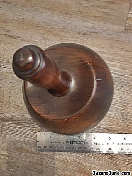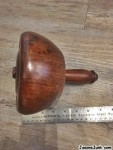 Can anyone help me identify what this is. It has been in our family for decades. It is solid wood (walnut possibly). Someone once suggested it might be a wool spindle, but searching the web for wool spindles I haven't been able to find a similar one. Help please and thanks! And if you have an idea of what this is, can you tell me what it might be worth?? Thanks for your help!