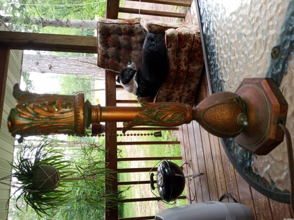Very heavy, cast iron, bronze, or brass. Has some green oxidation. Octagon base. Orb bottom of stems, and leafy pattern that extends to the very top. Closest thing I found was maybe french candlestick?