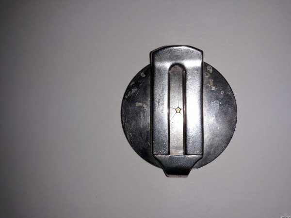 1.13x1.10 inch. silver metal clip and back side. on clip in small print it reads: Anson PAT 3,049,772. front shows horse head wearing halter.