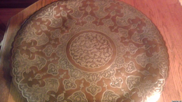 Early 19th century mamluk tray brought back from Egypt in the early 1960 by my grandparents while touring the world. Was my grandfathers prized piece. I have no paperwork except for the mention of the item in my grandmother's memwa to our family. It weighs around 12 pounds.