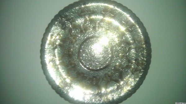 Egyptian 25 1/2" copper with silver inlay tray Unregistered