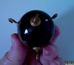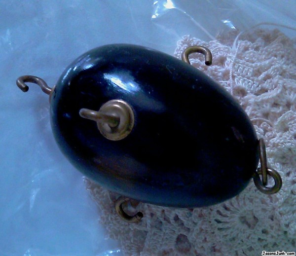 Got it at a flea market. Seller didn't know what it was, either. It's about the size of a darning egg, but clearly not used for that. I thought about it for making twisted cord, but there would need to be a swivel at the top — which could have been lost — but even then, why would there be a hook at the center bottom?