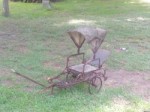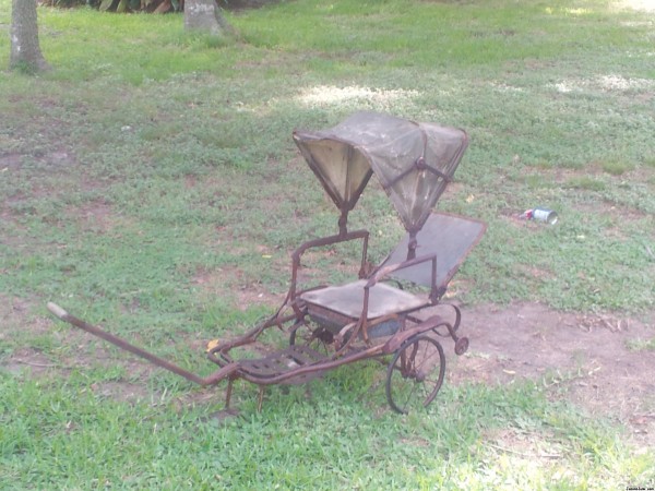 Need to find information on this pull type stroller/carriage/buggy. It is made of metal and has canvas seat and canopy. It has 2 11" wheels with 2 smaller wheels to keep it from tipping backwards
