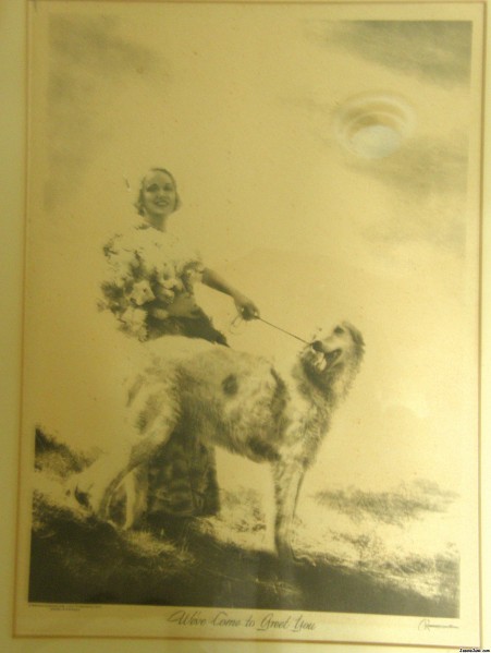 A WONDDERFUL PRINT OF A LADY WITH IRISH WOLF HOUND STANDING ON THE MOORES