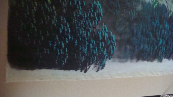 I believe this to be painted on silk screen and attached to a board. The colors are magnificent. The detail is fantastic. I see no markings on this one,but have another one to match this one with what I assume to be Japanese writing or letters.