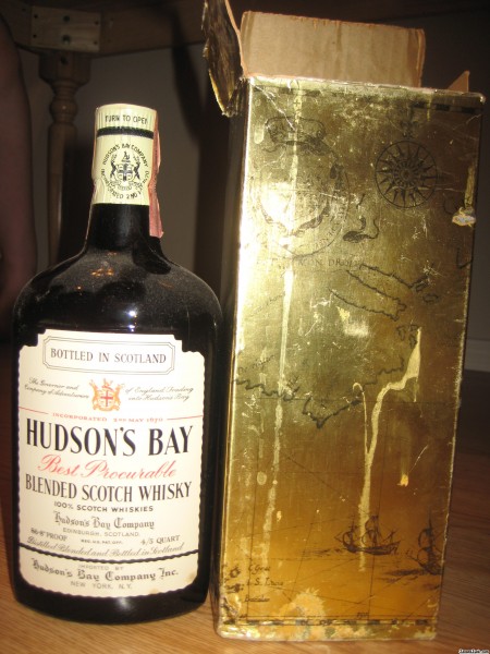 This is a bottle of blended scotch whisky made by Hudson's Bay and bottled in Scotland. This beloned to my Wifes Great Grandma and is belived to have been bought in the 60's or 70's (may have been earlyer). Bottle is unopened. Has original box, but the box is in rough shape.