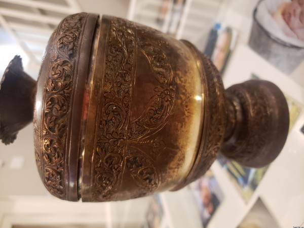 Found these on top of a kitchen cupboard of a place I moved into. There are two of the containers, one that had a frog with a crystal eye in it. It smells like copper. Definitely hand crafted. Wondering if they are urns, or perhaps candy dishes, ornamental? Not sure. I do know however the person who lived here before was chinese and had left back to her home town. Wondering if part of chinese culture? I'm very interested in knowing what these are, and how much their worth. Also I couldnt find any marking to my knowledge on the peices