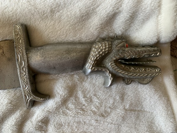Dragon has red eyes and the curvy blade has Philippines stamped on it.