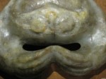 estate sale find. owner took many trips to china and had many high end items, then this guy. it looks kind of like a crab and its soapstone. not much detail, but some... i thought the claws looked odd w/ the 'feathered' look to them. also note the heart shapes you can see on the back shell of the 'crab.' oh, and the weird part - the 'handle' on the back. thats all i've got really. i think its an ornament meant to anchor into a wall w/ mortar. or a mold/stamp thing you would hold and press into something. others have guessed: mask, paper weight, (simply) a crab, and ancient alien poop.