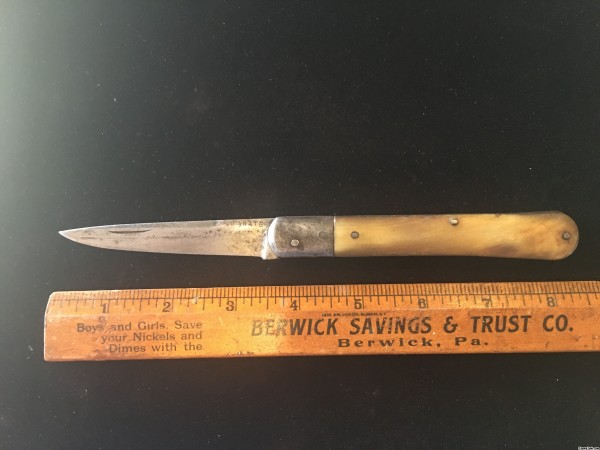 The only markings on the knife is the name and the beginning is missing. All I can make out is D’ARATE . The handle is some type of bone or shell it doesn’t look like wood but I could be wrong. It has shine and light transparency to it. I have two reference books and I searched google and eBay and I can’t find anything like it. Any help would be greatly appreciated. Thank you
