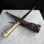 I believe this is an Central Asian Bukhara or ISLAMIC DAGGER - KNIFE. MUGHAL INDO-PERSIAN, CIRCA 18TH CENTURY? It's Damascus Steel and the studs in the handle appear to have been replaced. The scabbard is missing tassels and is lined with a wood interior. Please help! Thanks so much.
