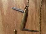 My grandfather had this knife. It looks like there might if been a watch or something else on the end of the chain. I don’t know much about where he got the knife. The only marking in it is in the blade and it says stainless. He passed away in 1974 so I know it is older than that. Email is fallsmedic@yahoo.com