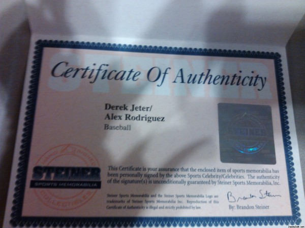 Rawlings Baseball signed by both Derek Jeter and Alex Rodriguez.