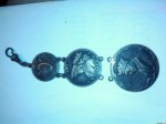 This was found at my grandfather's house. I don't know what it is. Anyone? Please tell me if you know. One side has a glove holding tools, a lantern and an automobile. The other has a tire with wings, a messenger or saint, and a driver. I guess it to be from the 30's. What is it???