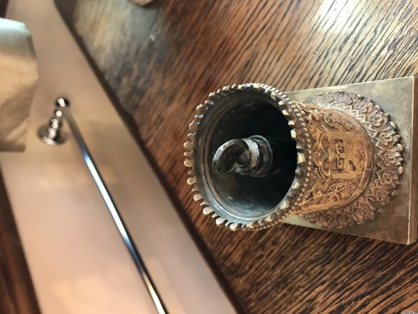 No markings. approximately 2.65" x 2.75" x 5" tall. Purchased in Lubjana, Slovenia in 2017 at a flea market. On the finger hold of the center piece are letters which read on one side " UEG RHNETA N3" and on the other side "FUMA DX APARU" They are difficult to read but these are the best I can tell. It held liquid as there is discoloration on the center piece and in the bottom. It is screwed together so some liquid has come through the bottom leading me to believe it was not meant to hold liquid all the time. It is a bronze color but looks like a tinted pot metal.