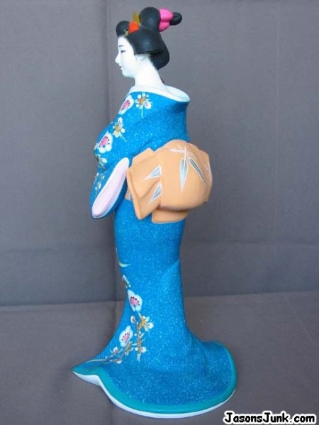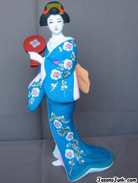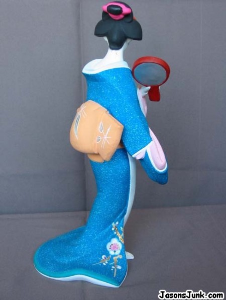 Bought in Japan in the late 70's or early 80's. The mirror that is held in the figurine's hand and the figurine's hand itself are detachable (one piece). The rest of the figurine is one piece and stands 15" tall. Need more information on this.