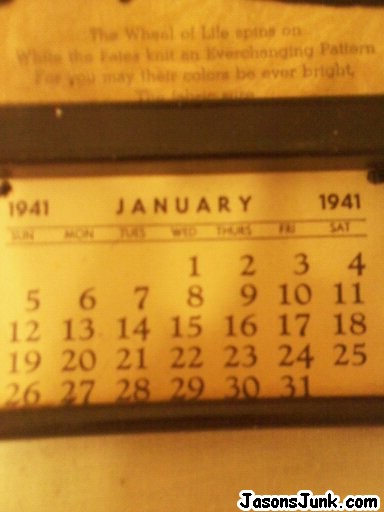 1941 Painted Glass Calendar with Thermometer