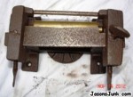 about 7 x 8 inches, no marks whatsoever i'm afraid, but if someone could identify it that would be great.