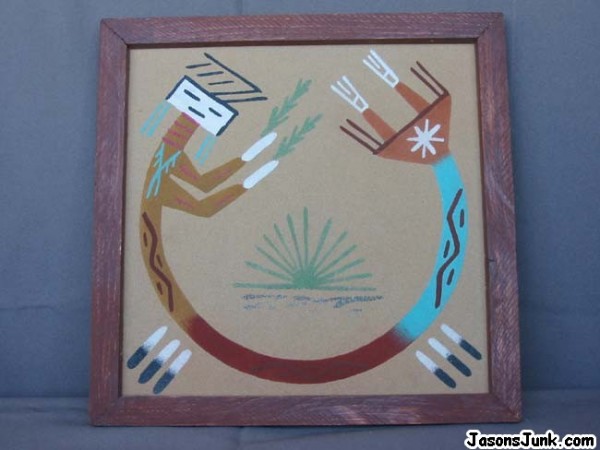 Southwest American Indian (Navajo) Sand Painting, Rainbow Yei Bi Chei with Yucca Plant