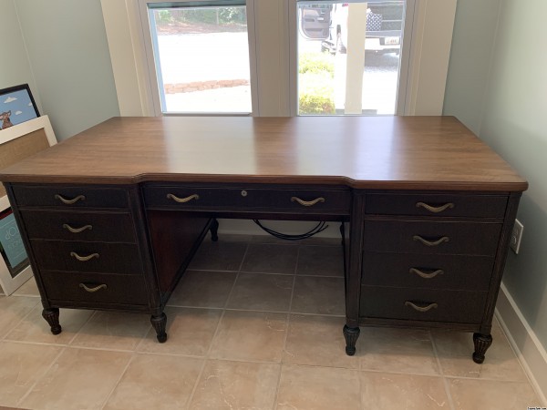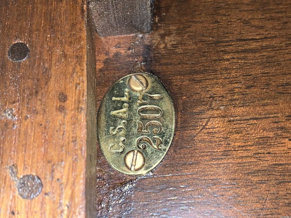 The tag is the only if I can find on the entire desk. I bought it on Facebook marketplace and when I posted looking to ID it I found a person that bought it out of an old clothing store in Hampton Georgia. She claimed it was in rough shape and she had refinished it and sold it a few months prior. The desk seems to be solid wood. I would like to know the manufacturer or identify the desk. I originally started my search to see if I could order a key. Google searches have pulled up schools and Confederate Sons.