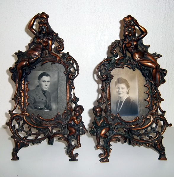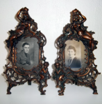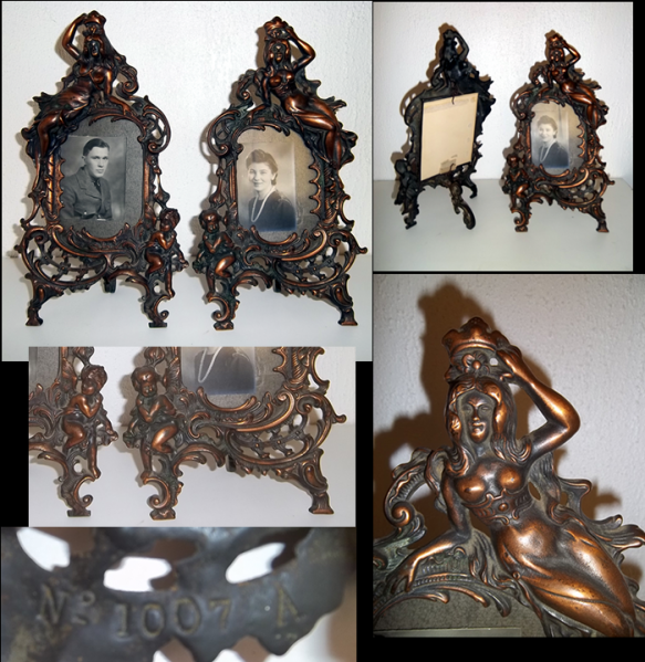 My Mother bought these from a neighbor. She said they were from England and were a wedding gift in the late 1800's. I think they are brass and or iron,they have a copper coloring. 14 inches high x 8 inches wide. No 1007 A is on the back of both frames. looking for appraisal and any other info. you may have. Thanks