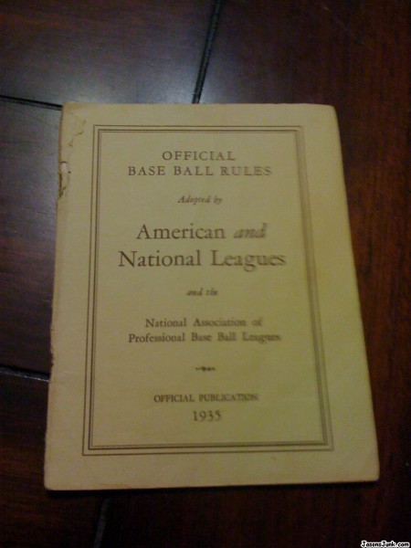 Official Major League Baseball Rule Book from 1935. Fair condition. Inherited from original owner. No pages missing. Few stray markings.