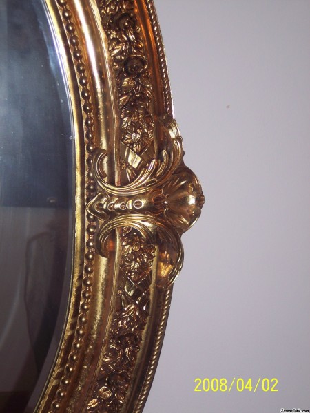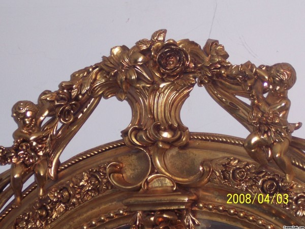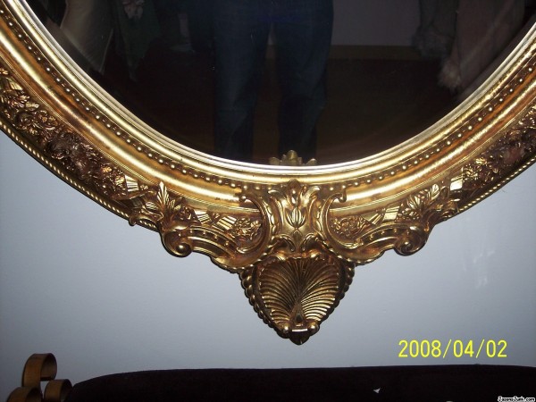 I inherited this mirror from an aunt a few years back. All I know is that she brought it from Europe to South America and then when she moved to USA brought it along with her. (Strikes me as add since the mirror weighs at least 80 Lbs, it took 3 ppl. to hang it up on my wall) The detail on it its unreal it has leaves, flowers, angels etc.