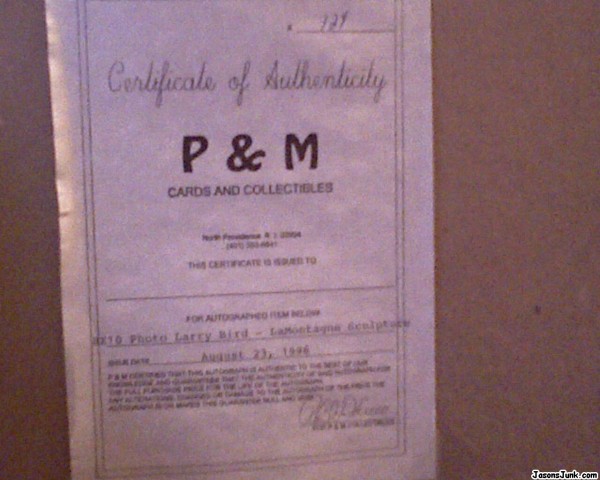 August.23,1996 8x10 Larry Bird-LaMontagne Sculpture Autographed With Certificate of Authenticity By P&M Cards and Collectibles in North Providence R.I. 02904 Phone#(401)353-6841