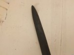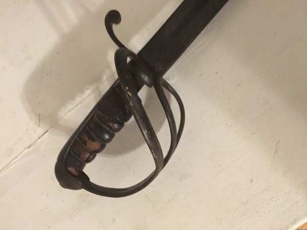 Ok so there aren't any engravings or labels that I can see. The handle appears to be part wood and part metal