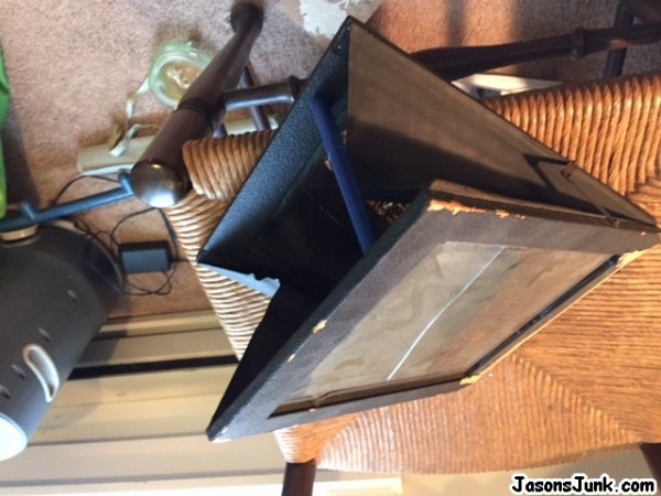 Old viewing box with mirror and etched religious picture on glass. No idea what this is called or the value of.