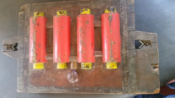 Our best guess is that it is used in training. The wood cylinders might be fake fuses. If so, what were they teaching with this piece. Or is it something else?