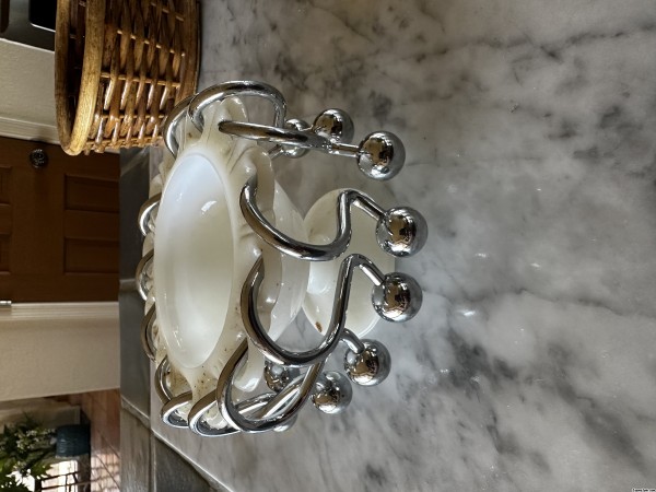 White bowl that have removable hooks on it in a circle. The only imprint on it is “19â€. No other details about it