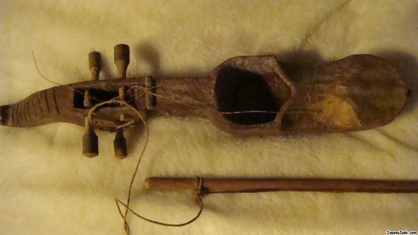 It actually has a bow as you can see in the pic and the stringing on it is very fine.The bow is hollow also.