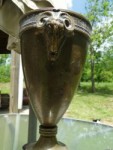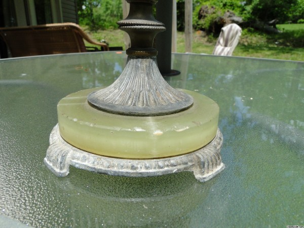 There are NO dates or any writing on this item. It is VERY heavy and 13" tall. Part of it is iron I am guessing for the stand where the stone is on.