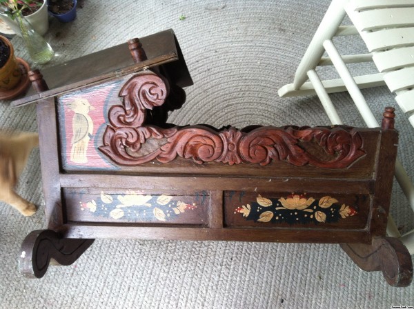 This is a very heavy wooden cradle that appears to be hand carved and painted. 24" long by 11" wide. Has anyone ever seen one like it or know anything about it ?