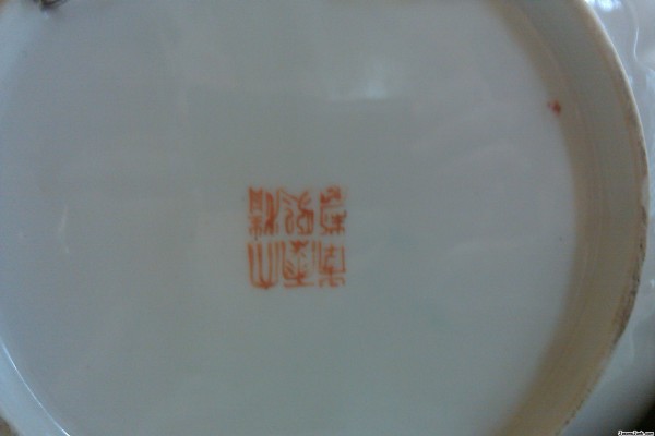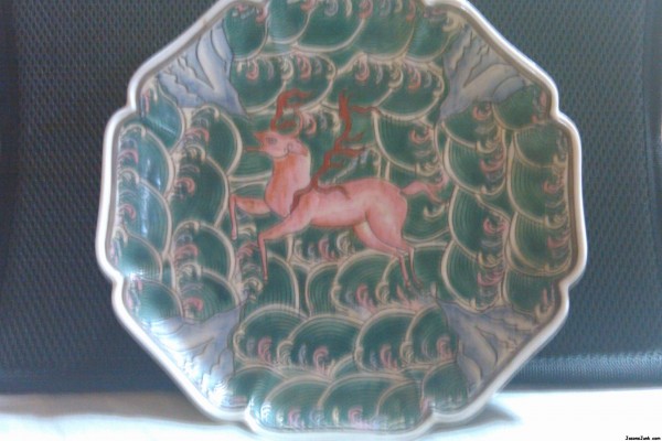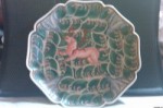 Asian; Chinese; China; Antique; 4 legged pink creature with red antlers; 1PC Plate; Embossed Etching