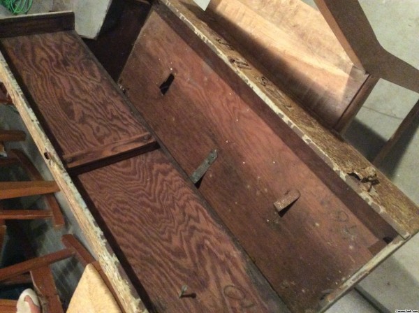 No labels, I.d. Bought at antique store on Hwy 53. Metal clamps inside.