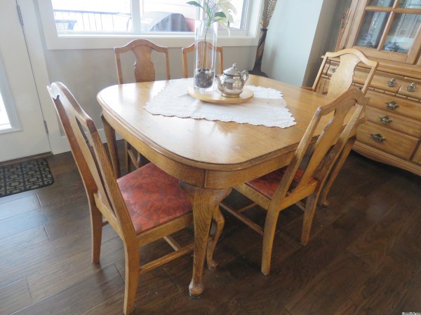 This table also has 4 leaves and an extra set of legs. It was "garbage picked" by my father in Edmonton Alberta in the late 1950"s
