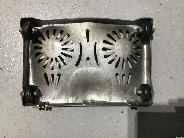 Metal seat with 4 hard rubber wheels that do not turn. On the sides of the wheels is raised letters†Health Developing Apparatus Co. Bridgeport Conn. Is this part of a vehicle? Is it used for working on flooring?