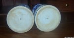 These two vases have no name. They are heavy like stoneware. I have no idea what they were used for because of the hole on the bottom and what looks like old glue on the bottom. Where they glued to more pottery or a grave or something?