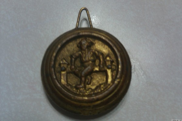This medallion was found inside of a mantle clock while going through family furniture. It appears to be brass. It has no inscriptions or engravings on it. It is about the size of a pocket watch and is very heavy. The front appears to be a picture of a man sitting on a fence post.