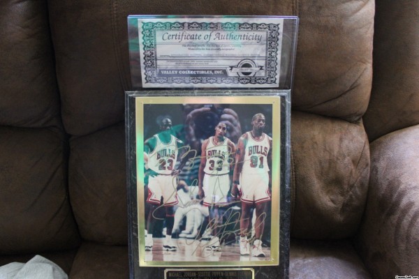 This Item is a 8x10 photo in plaque of Michael Jordan,Scottie Pippen & Dennis Rodman, Chicago Bulls when they went 72-10 with all 3 autographs and with Certificate of Authenticity. I would like to know what this could be worth.